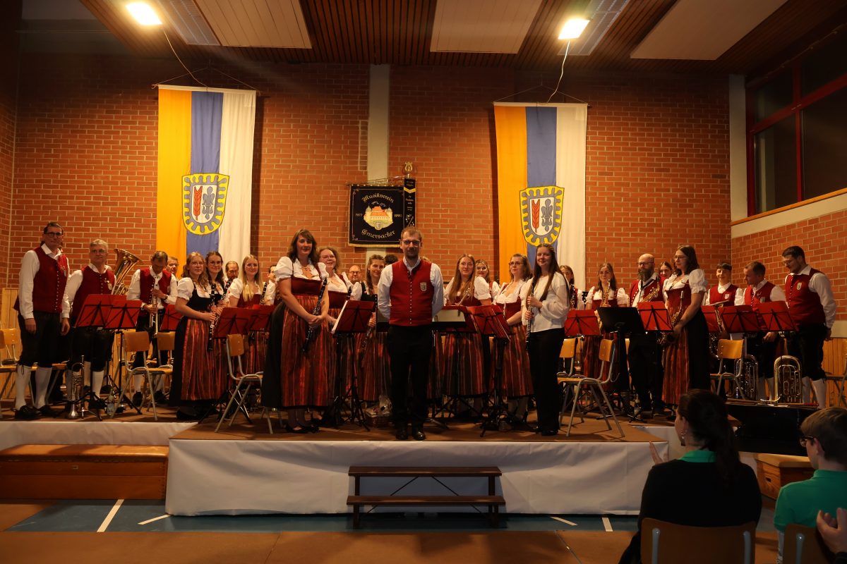Eröffnet wurde der Konzertabend vom Musikschulorchester der Musikschule Holzwinkel & Altenmünster unter der Leitung von Nadine Schiffelholz. Mit „Guardians of Liberty“, „Takeoff!“, „Coldwater Crossing“ und „Troika Fantasy“ sorgten die jungen Musikerinnen und Musiker für einen dynamischen und farbenreichen Einstieg. Als Zugabe erklang der bekannte Song „Yellow Submarine“, der für fröhliche Stimmung im Saal sorgte.